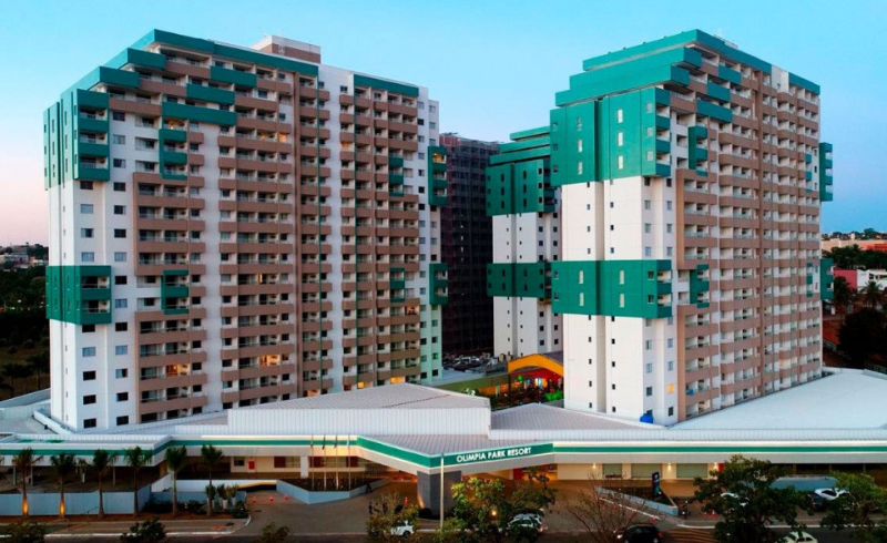 Resort moderno em Olímpia, a 200 metros do Thermas dos Laranjais, com lazer completo e suítes espaçosas.