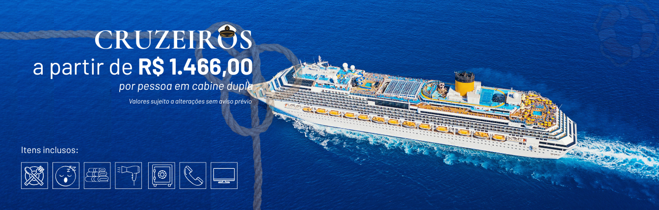 De 23 a 25/11/2026: Embarque em Santos desembarque em Itajaí. A partir R$ 1.213,00 por pessoa em cabine dupla. Em até 12x sem juros no cartão.