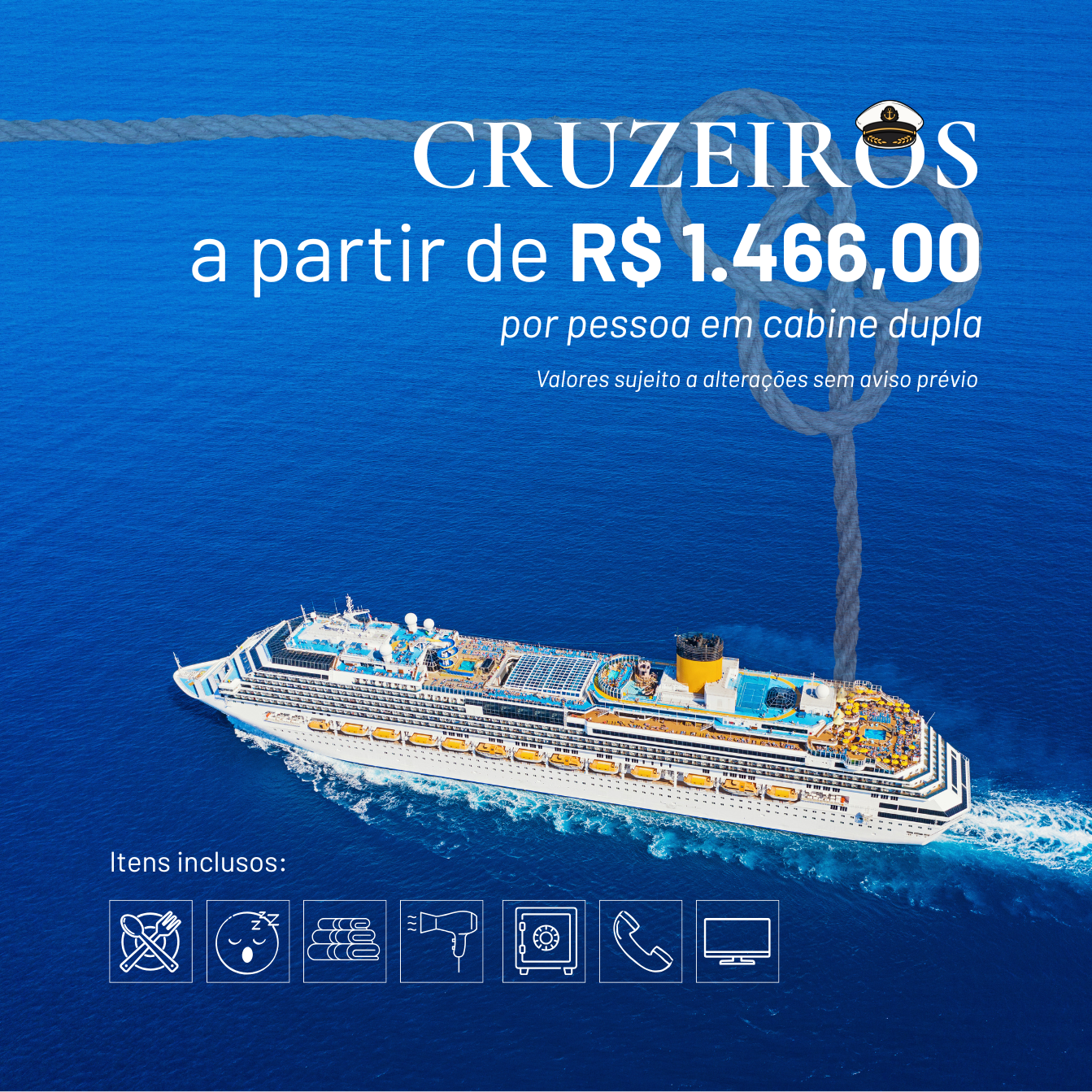 De 27/01 a 05/02/27: Embarque e desembarque em Rio de Janeiro. A partir R$ 6.639,00 por pessoa em cabine dupla. Em até 12x sem juros no cartão.
